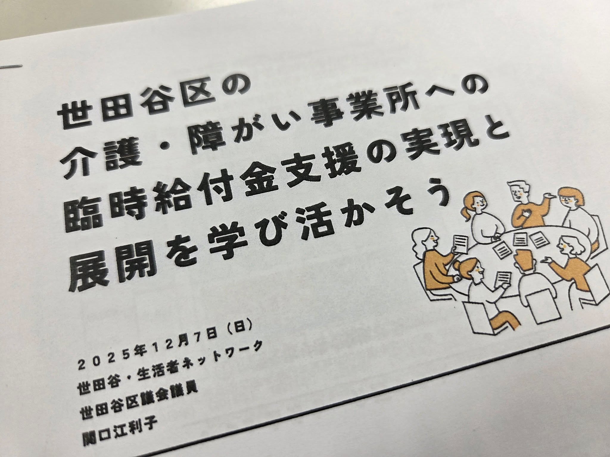 「杉並のケアをつなぎ・よくする会」さん主催の学習会へ。テーマは、世田谷区が独自で実施している「介護・障がい事業所への支援」について。どのように実現し展開されているか、その根底には議会論戦とあわせ、陳情や署名などに取り組む市民の方々の運動がありました。中野でも粘り強く取り組みます。