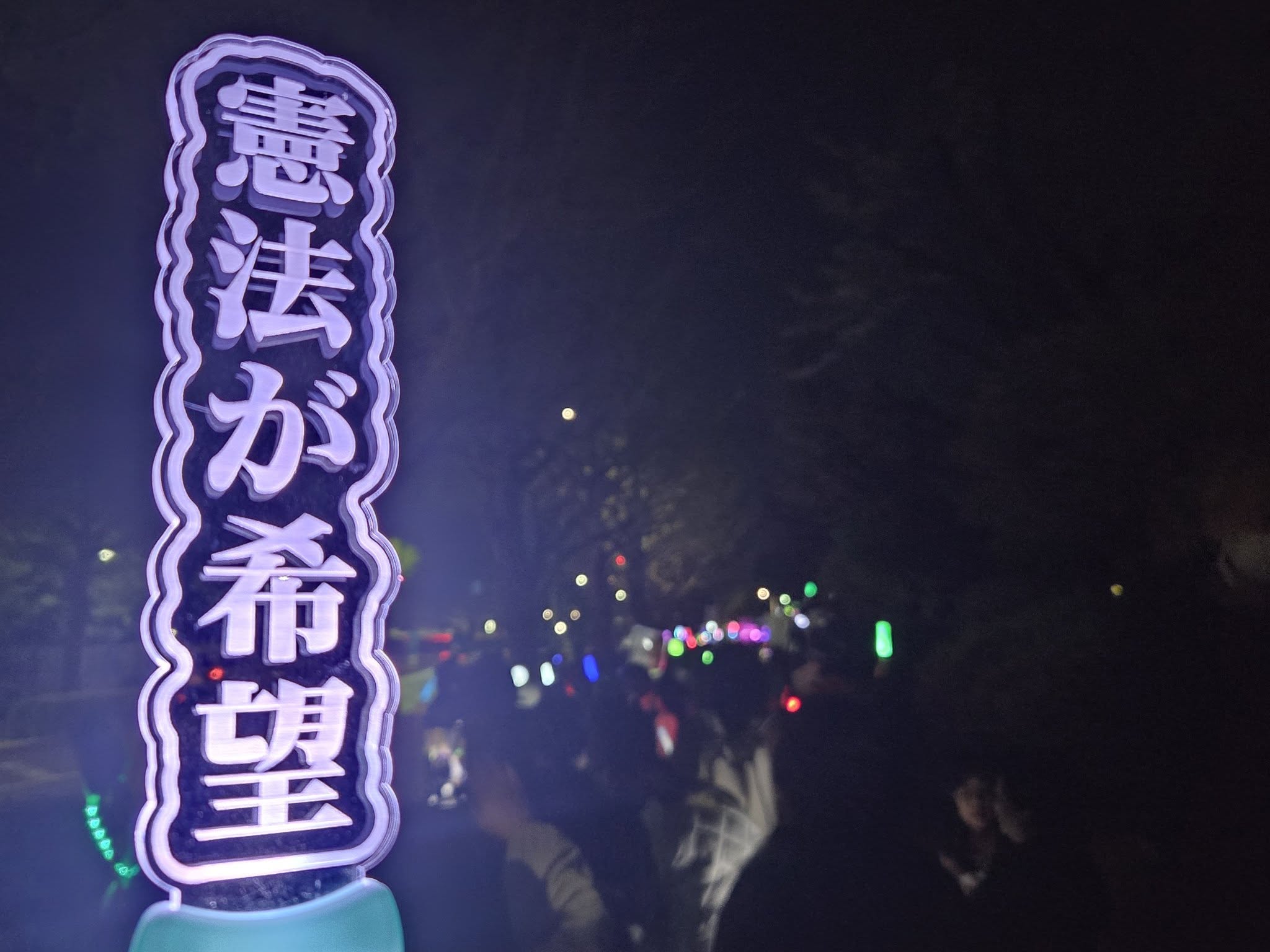 中野を出発する直前で、緊急の生活相談の電話が入り、国会前到着が21時近くなってしまったのですが、その時間でも国会前へ向かう方が途切れていませんでした。帰路のため駅へ向かう方と視線をあわせたりペンライトを振ったりして、エール交換。国会前参加者3万人、オンライン7万人の参加と主催者より発表がありました。全国の150ヵ所近いところでも、同時間帯でアクションがおこなわれたとのこと。とても、励まされるとともに、大きな希望を感じます。